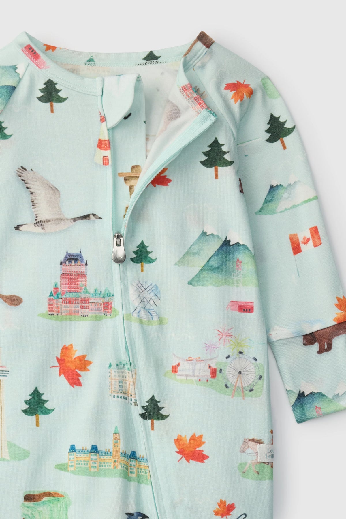 It features a full two-way zipper to make diaper change easy, flat seams on the shoulder and sides of the body, and a printed inner care label to reduce irritations for babies' delicate skin.