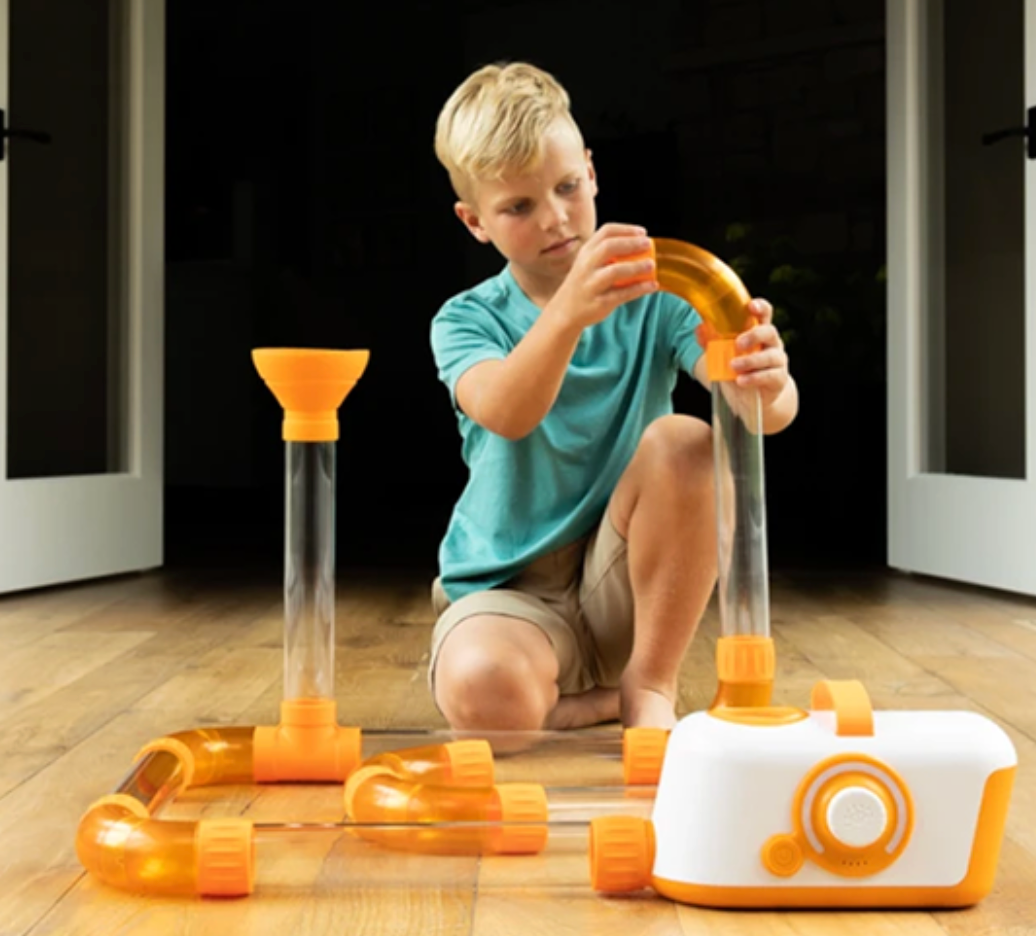 Arrange the tubes and connectors in any way you can imagine. Create loops and swirls. Weave them under tables and over desks. Then, switch on the fan and let the experimentation begin...