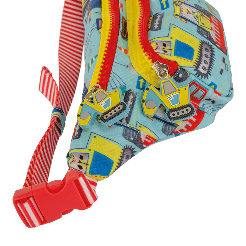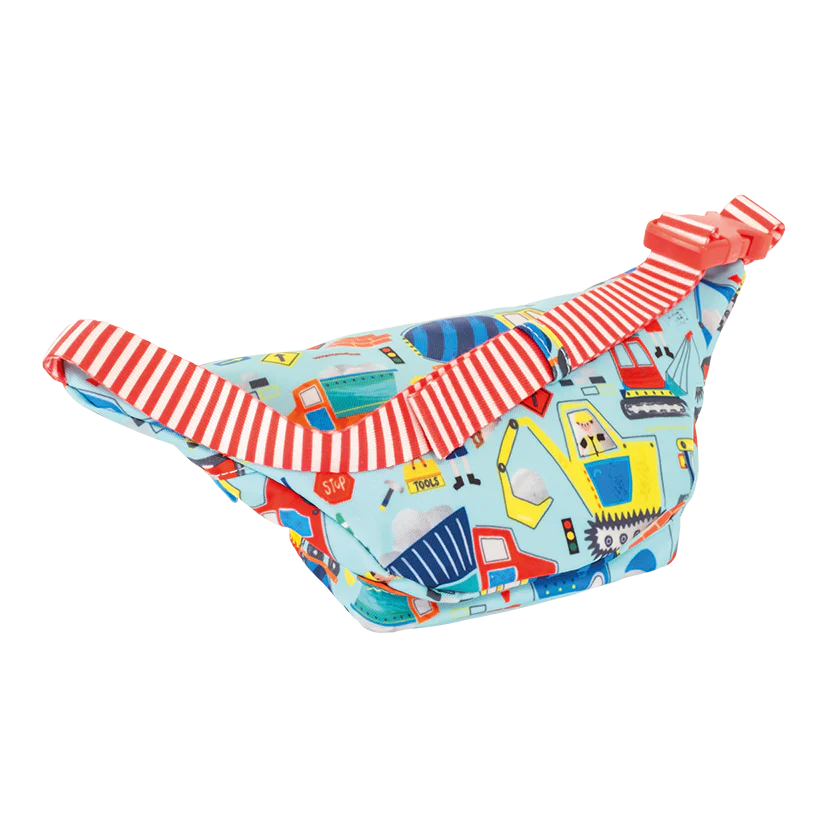 This Construction design has two chunky, digger shaped zip pulls, two handy compartments and an adjustable strap in a gorgeous striped material. Inside the bag is a lovely Construction print and an ‘I belong to…’ label for personalisation.