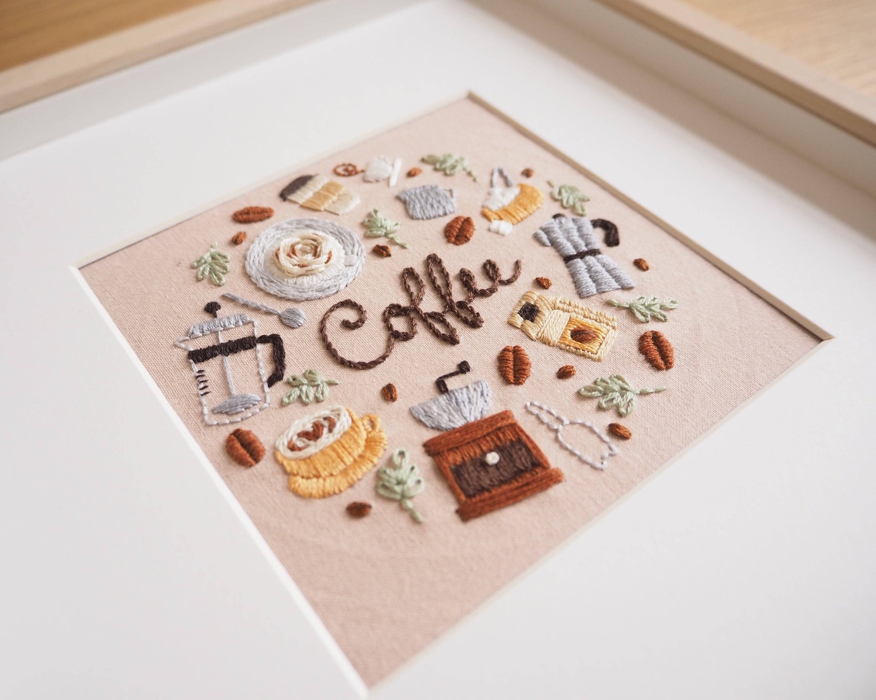 DIY Embroidery Kit 'Coffee Lover' is part of the 'Coffee & Tea' series of designs.