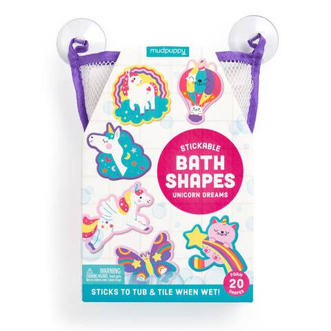 Provide plenty of soapy bath time fun with Mudpuppy s Unicorn Dreams Stickable Foam Bath Shapes. 20 soft foam shapes of magical unicorns stick to the tub and tile when wet, perfect for keeping babies and toddlers engaged and entertained at bath time. - 20 foam shapes stick to tub & tile when wet - Package with peggable hang tab: 6.5 x 9.75 x 2.25, 16.5 x 25 x 6 cm - Mesh storage bag with suction cups included - Packaging contains 50% recycled material. Printed with nontoxic inks - Ages 3+ ...