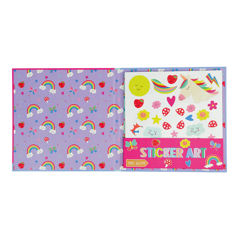 Each design comes with 8 scenes ready to complete and 5 sheets of scented, easy peel stickers. All of these are kept inside the pocket of a sturdy book that can be kept shut using the handy elastic closure.