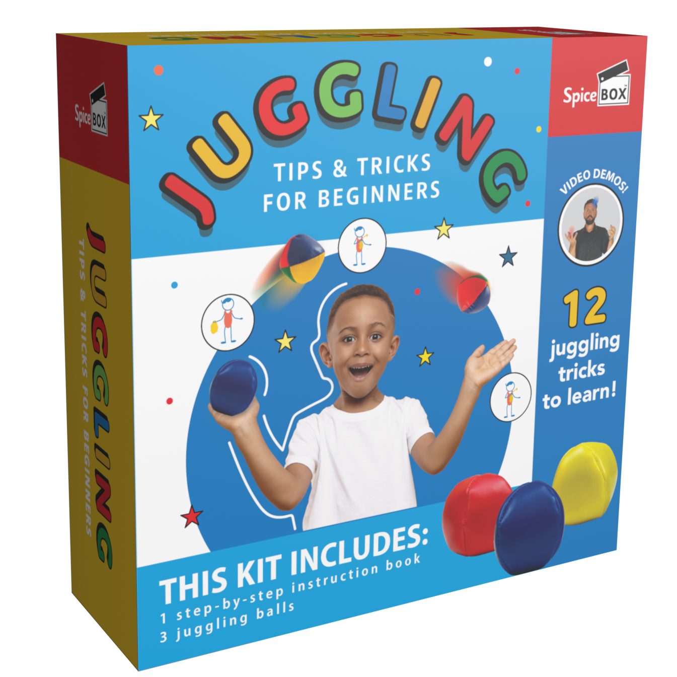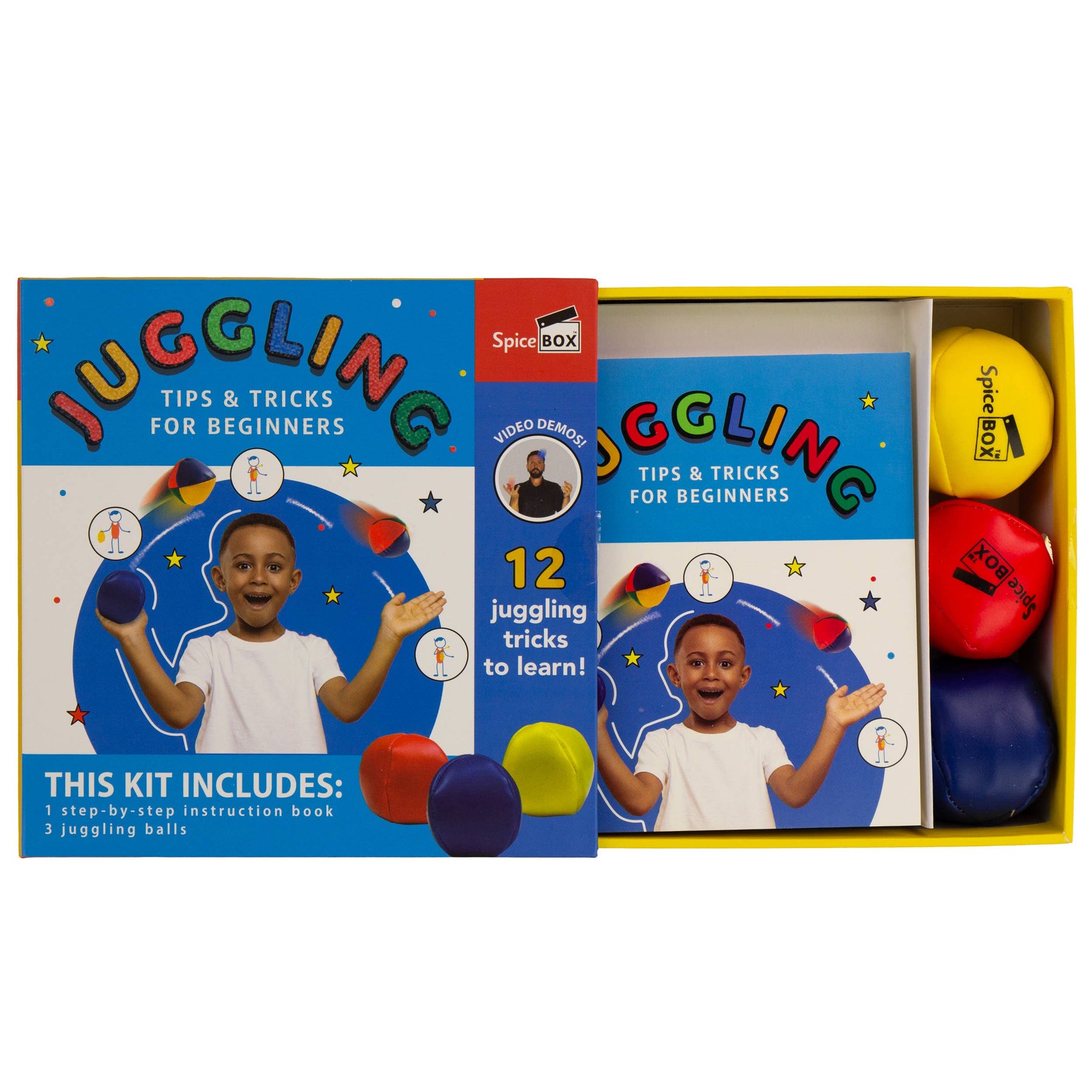 Anyone can juggle! Juggling may look like a magic trick, but all it takes to get started is the ability to toss a single ball into the air. With illustrated steps and video demonstrations, this kit will teach you 16 tricks using scarves and balls so you can amaze your friends!