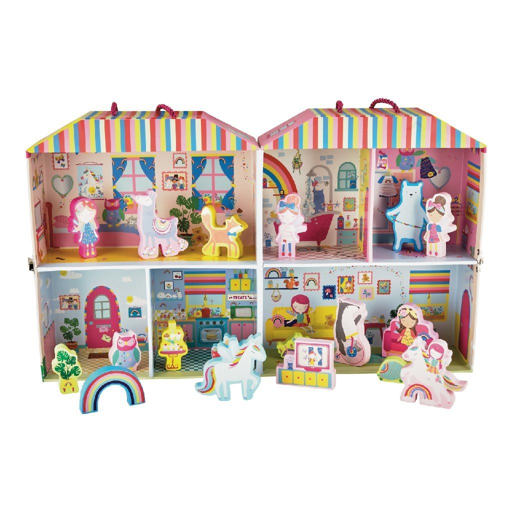There are fairies, flying unicorns, roller blading Llamas, Hula dancing Bears and so much more. The house opens up to reveal 6 gorgeous rooms, all hand illustrated.