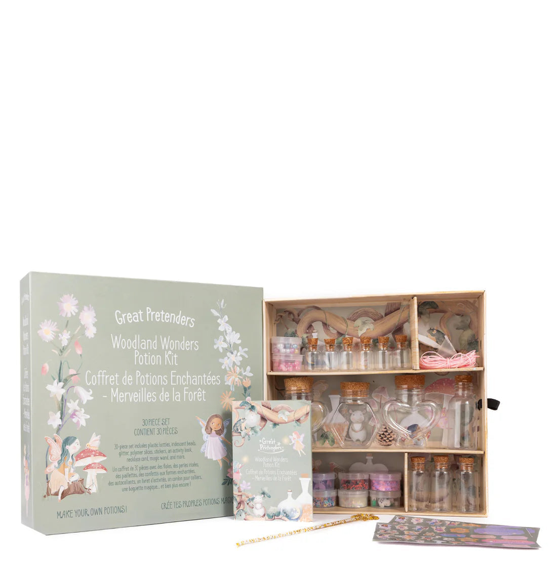 This enchanted set has everything your little fairy needs to mix, fizz, and cast playful spells deep within the woods. Inside, they’ll discover a spell book filled with whimsical recipes, woodland creature charms, fluttering butterflies, tiny insects, and fairy stickers to decorate every potion creation. Perfect for sensory play, pretend-potions, and mystical mess making, this kit transforms playtime into pure woodland wonder.