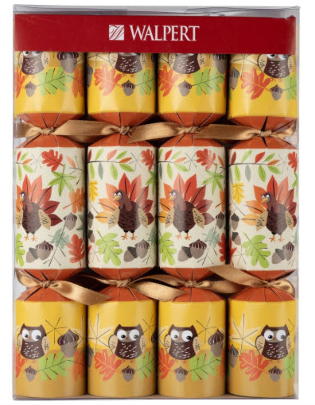 Make your Thanksgiving meal livelier and keep your guests at the table longer with these Turkey pattern Thanksgiving crackers at each plate.