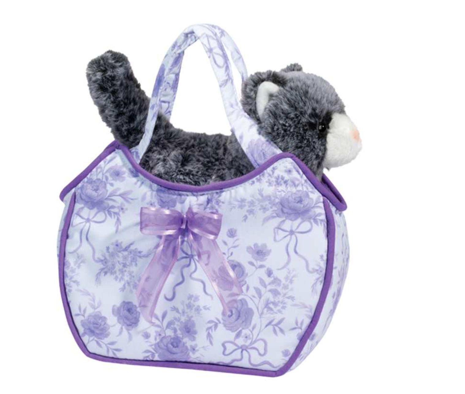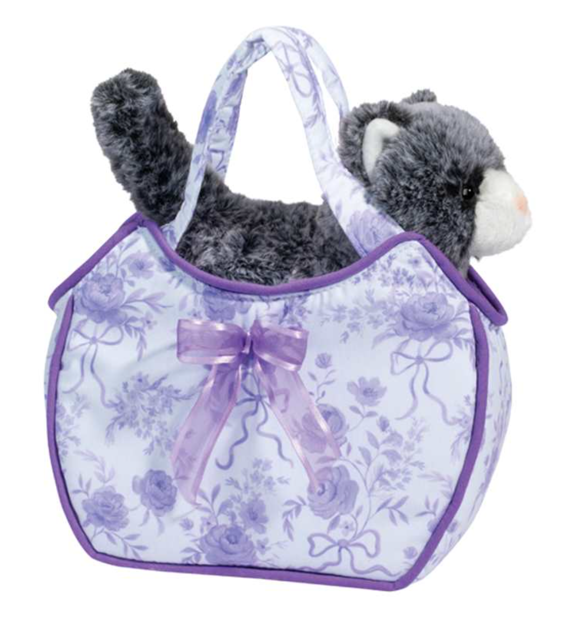 Cozily nested inside the purse is a sweet gray and white cat plush toy that makes this already enchanting purse even more special.