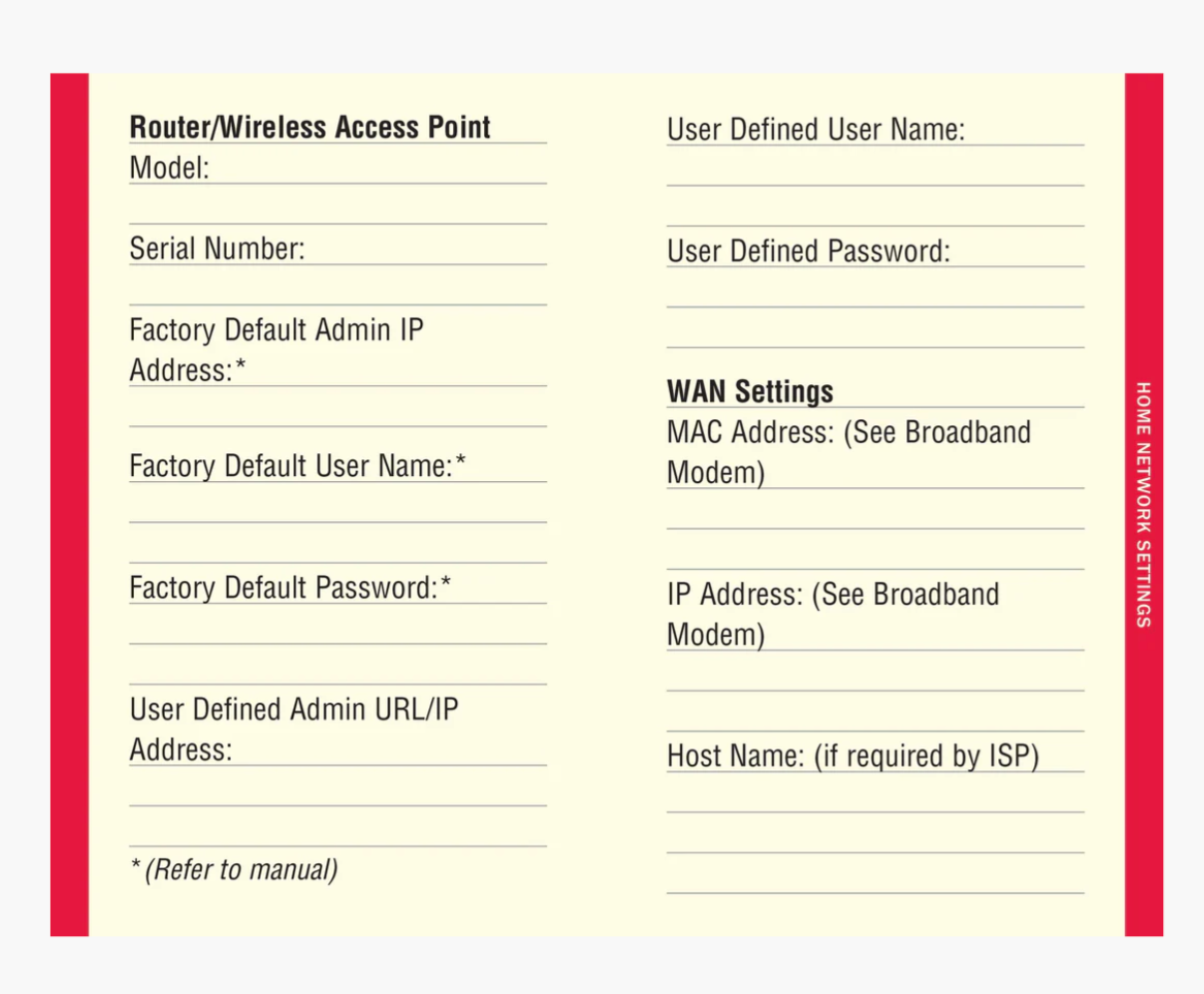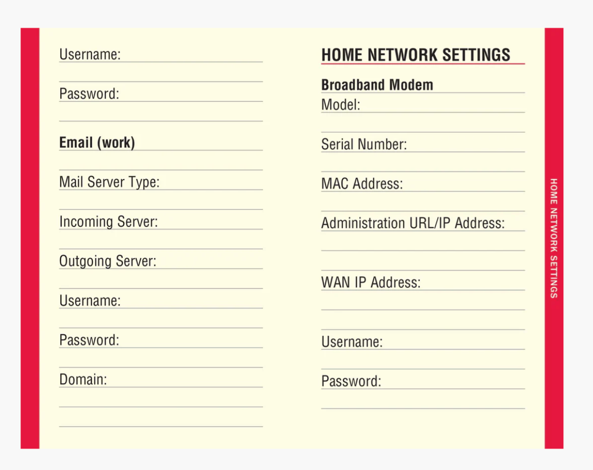 You can also make notes about home network configurations, software license numbers, etc., in pages in the back of the book.