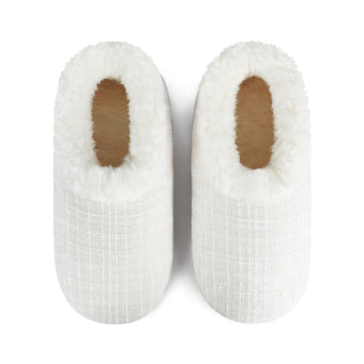 Womens Sparkle Tweed Cream Slipper With Memory Foam Sole