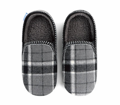 Mens Grey Modern Plaid Alpine Slipper With Memory Foam Insole