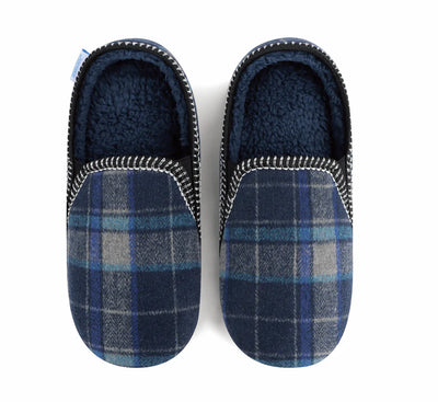 Mens Navy Modern Plaid Alpine Slipper With Memory Foam Insole