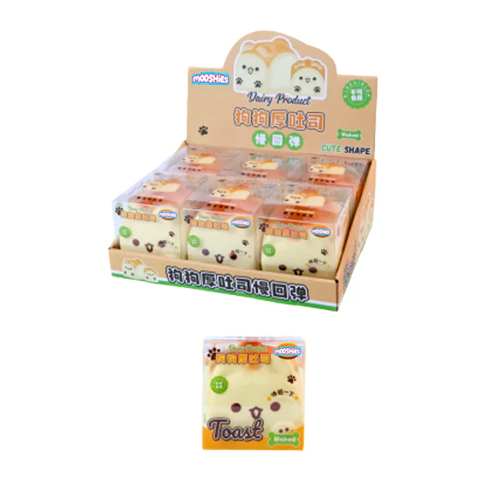 MOOSHIES Dogy Toast is a fun, dog-inspired squishy shaped like a delicious piece of toast. With a super-soft, slow-rise texture that’s satisfying to squeeze, it’s perfect for stress relief, collecting, gifting, or display. A playful, squeezable treat that adds charm to any squishy collection.