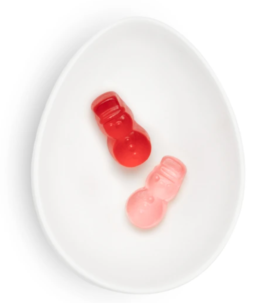 These strawberry and pomegranate flavored snowman gummies come in festive hues of red and pink for a treat you'll love snow much.
