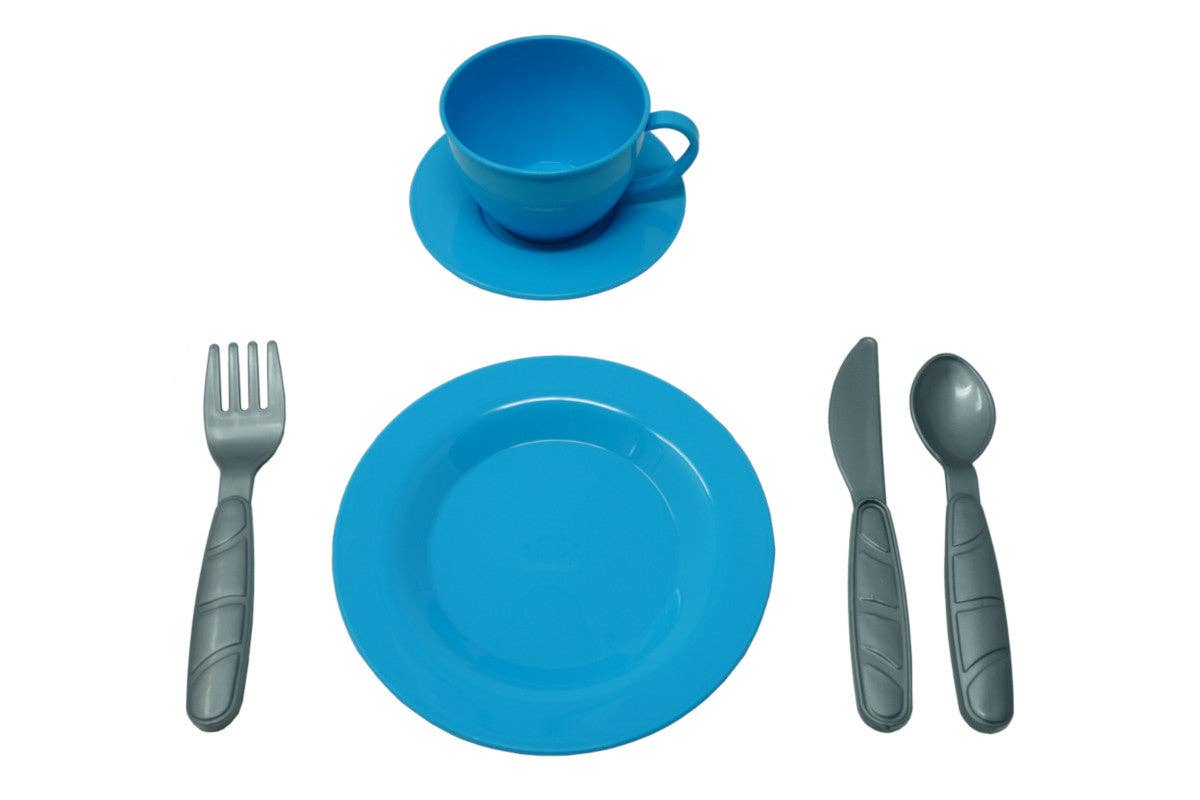 • 33-PIECE PRETEND PLAY COOKWARE KIT: This toy set has everything little chefs need to cook and serve delicious meals for 4 persons. Includes 4 place settings (plates, cups, saucers, forks, spoons, and knives), pot with lid, frying pan, saucepan, 4 cooking utensils, and dish drainer