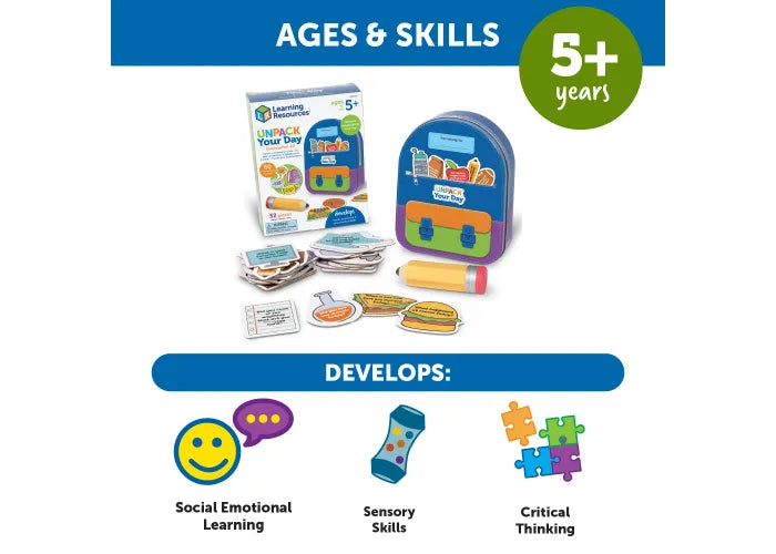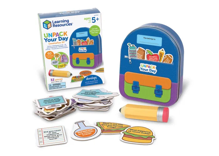 - Unpack Your Day: Get kids talking about their school day and beyond with this social-emotional learning toy’s 30 double-sided conversation cards!