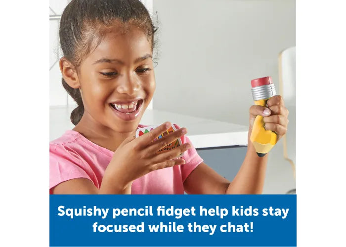- Focused Fidget Fun: This set’s squishy fidget pencil helps kids stay focused and engaged as they share their thoughts!