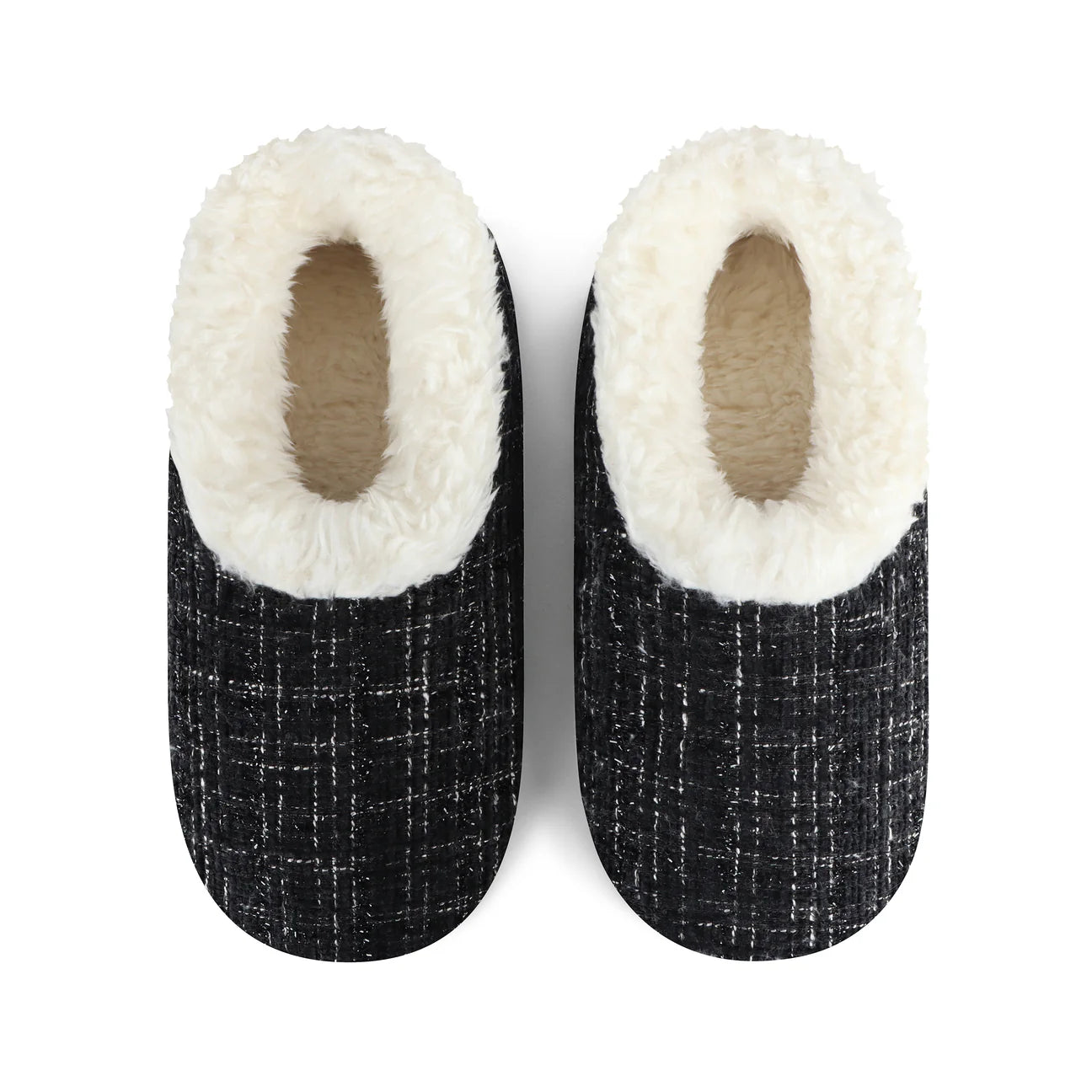 Womens Sparkle Tweed Black And White Slipper With Memory Foam Sole